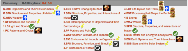 This is hogwash. Trying to re-imagine the elementary performance expectations in any way other then topic units is like trying to re-create the wheel. Why would anyone bother when it’s already done for you? At first this might seem like a good thing- hey, the standards are finally telling us what units to teach in each grade! But the closer you look at these topics the more you realize that they fall short of good units. Some topics (like the 1st grade Patterns and Cycles) are weak and devoid of enough content to even merit a unit of study. Other topics start out with strong core ideas, but then the list of performance indicators keeps on straying further and further from the main focus. (like the 2nd grade Interdependence topic that tacks on bits random expectations about fossils). If the standards are going to be organized into independent topics that teachers will obviously treat like units, then they need to lend themselves to rich units of study. Which brings me to my last critique…